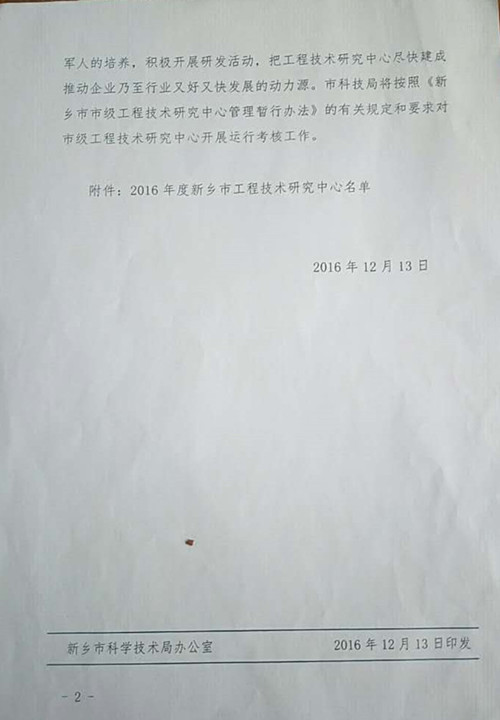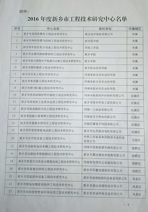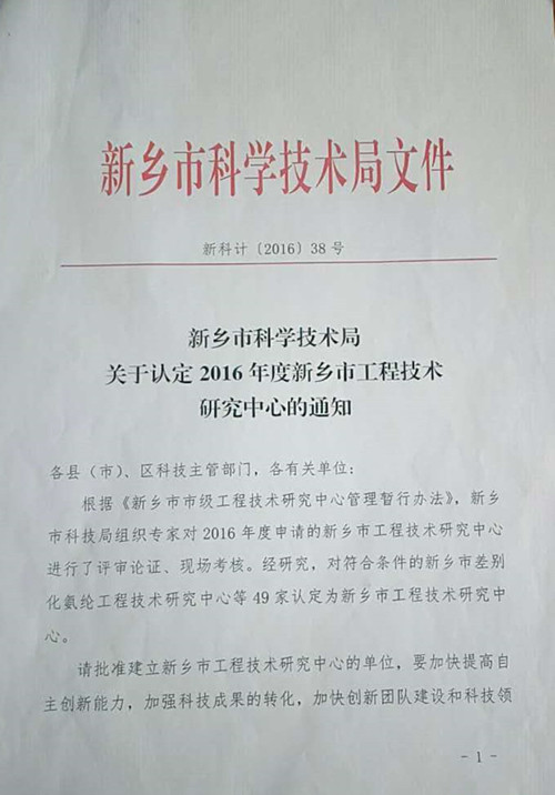 新鄉(xiāng)市科學技術局——關于認定2016年度新鄉(xiāng)市工程技術研究中心的通知
